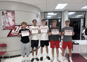 Head coach Lance Knight gave out awards to each player that was selected to the all-conference team in the Northeast Valley Conference. The Bulldoggers won the conference championship this season with an 8-0 conference record. They won every game by double digits. Find the all-conference selections in a story here.